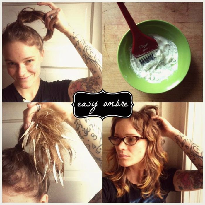 Тщательно расчешите волосы и соберите их в высокий хвост на макушке. Наносите светлую краску на все торчащие из хвоста концы, выждете время воздействия и смойте. Модное окрашивание с эффектом выгоревших кончиков готово.