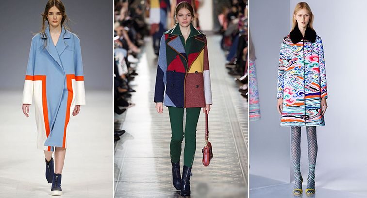 Модели, выполненные в технике пэчворк, будут особенно популярны. Такое пальто выполняется из сшитых разных по фактуре кусочков материала или же имитируется в виде узора.
