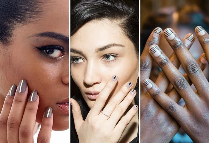 Такой маникюр сможет сделать любая девушка, и он здорово украсит осенний образ. Простые чёткие линии нынче в моде, они коснулись даже маникюрных трендов. Дизайнеры рекомендуют выбирать для фона лак спокойного оттенка, а для линий лучше всего подойдёт чёрный цвет.