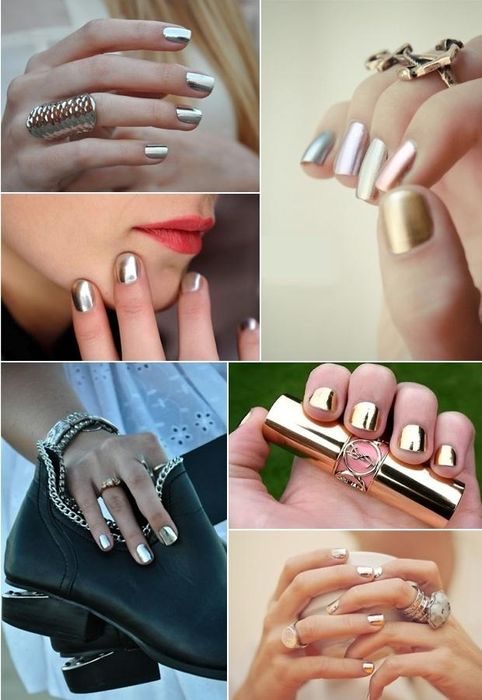 Металлические ногти стали популярными ещё летом, к осени эта тенденция лишь усилилась. А почему бы и нет, ведь такие ногти смотрятся очень эффектно и стильно. Осенью актуальны оттенки золота и меди, а вот зимой будут в моде все оттенки серебра.