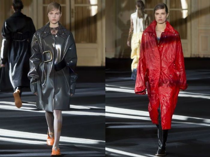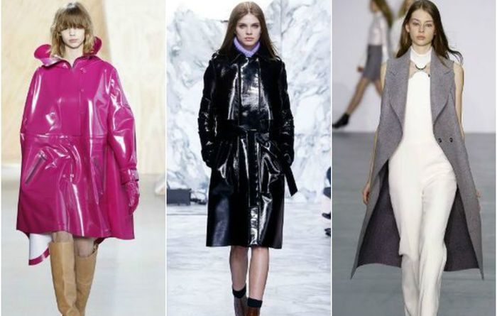 Пускай в этом сезоне присутствуют не совсем практичные тренды, есть среди них всё же те, которые понравятся любителям комфорта. Например, плащи из водонепроницаемых и устойчивых к ветру материалов – нейлона, спандекса, лакированной кожи.