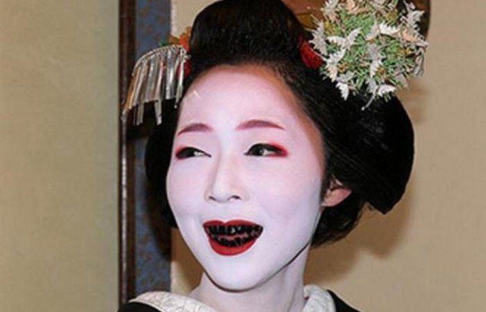 Еще сто лет назад женщины в Японии, видимо, считали, что кариес – это красиво. Поэтому, если зубы у женщины не выпадали сами по себе, то она красила их в черный цвет. Японские женщины зачерняли зубы так долго, что сегодня уже даже неизвестно, когда и почему они начали это делать. По крайней мере, примерно в 900 г. н.э. девушки уже красили свои зубы в черный цвет. В конце концов, подобная мода сошла на нет, а в 1870 году (т.е. просуществовала эта практика 1000 лет) она была запрещена.