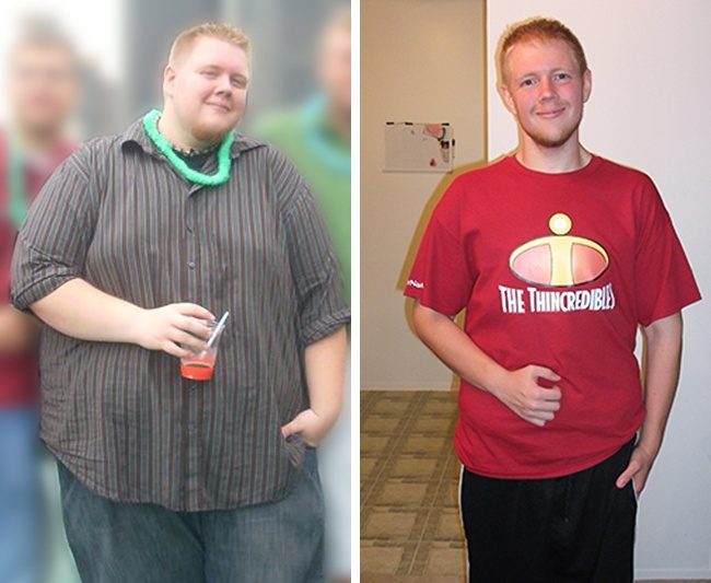 Когда врачи начали ставить неутешительные диагнозы, этот мужчина решился на радикальные изменения в своей жизни: отказался от фастфуда и молочных продуктов в пользу овощей, коричневого риса, киноа, овсянки и постного мяса, а еще решил, что еду нужно «заслужить» — перед каждым приемом пищи ходить пешком за продуктами.Теперь Паскаль ежедневно проходит 10 км, не покупает полуфабрикаты, а сам готовит блюда. Когда ушли 90 кг, он купил абонемент в спортзал. К пешим прогулкам и правильной диете добавились еще беговая дорожка и тяжелая атлетика. Спустя год мужчина сбросил еще 60 кг. Паскаль признается, что хочет быть хорошим примером для своего сына.