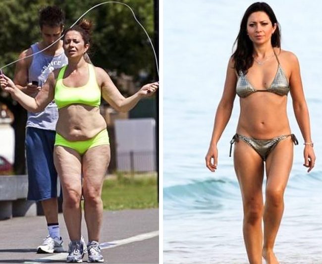 Британской телеведущей Клер Насир после 6 месяцев упорных тренировок, включающих в себя кикбоксинг, упражнения с гантелями, отжимания, приседания и бег, удалось похудеть на 15 кг.
