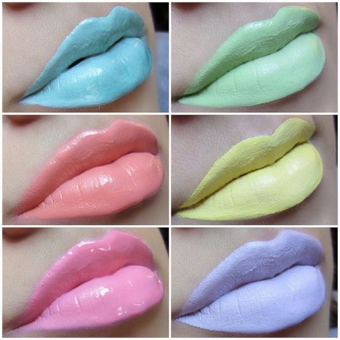 Многие визажисты устали от ярких неоновых оттенков, но не смогли отказаться от необычных оттенков помад. Они рекомендуют выбирать пастельные помады, но очень смелых и оригинальных колеров. На такой шаг модных визажистов вдохновило искусство поп-арт.