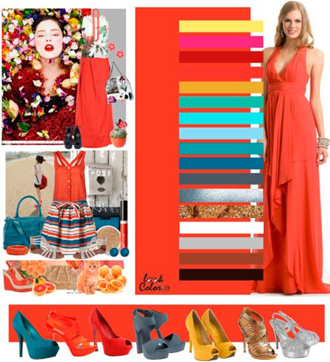 Тёплый красный оттенок, не столь яркий, как классический, но не менее насыщенный. Он не будет резать глаз, подойдёт для всех типов внешности. Расширяя свой гардероб, смело добавляйте кораллово-красный, ведь Lady in red – образ прекрасной дамы, для него вполне по плечу. Надеть вы его сможете куда угодно и когда угодно: цвет как для летней, так и для холодной погоды; для отдыха, для праздника и для работы.Неплохое сочетание кораллового красно-оранжевого цвета со светло-жёлтым, розово-оранжевым, ярко-розовым, ярким розово-оранжевым, тёмно-бордовым, приглушённым жёлто-оранжевым, с цветом весенней зелени, берлинской лазурью, серым, сиреневым, золотым, серебряным, белым, песочно-светло-бежевым, тёмно-серым, коричневым, тёмно-коричневым.