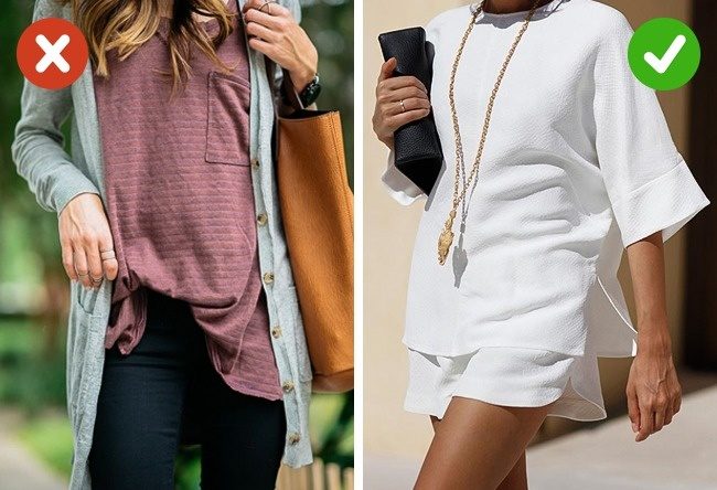 На шпильках по брусчатке во время путешествия или в коктейльном платье на работу. Цена и бренд не важны, это просто не к месту и не по случаю. В конце концов, это неудобно. Будет полезно узнать дресс-код и формат мероприятия заранее. Не стоит позволять желанию поскорее «выгулять» очередную обновку возобладать над здравым смыслом.4. Одежда не по размеру и не по фигуре