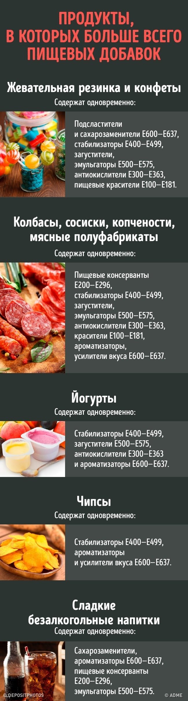 В состав практически всех продуктов входят пищевые добавки. Некоторые из них запрещены в разных странах, о вреде других ученые пока только спорят. Но есть и полезные.
