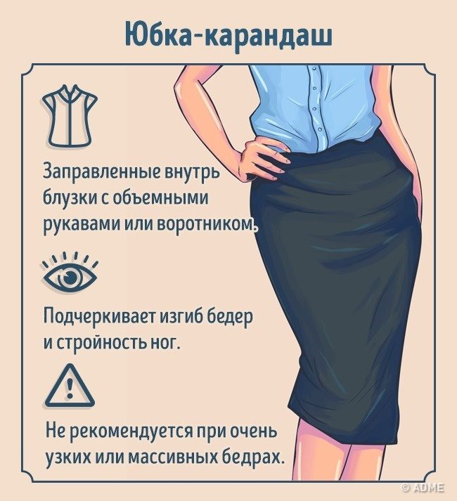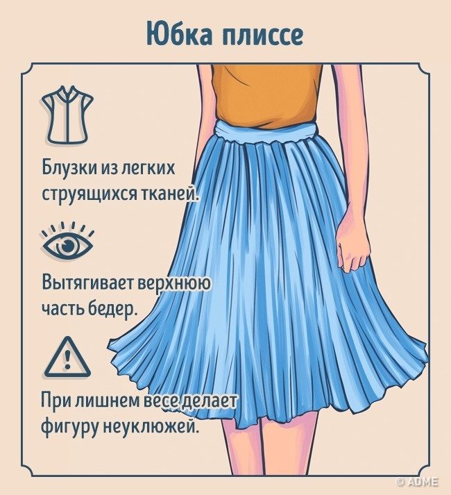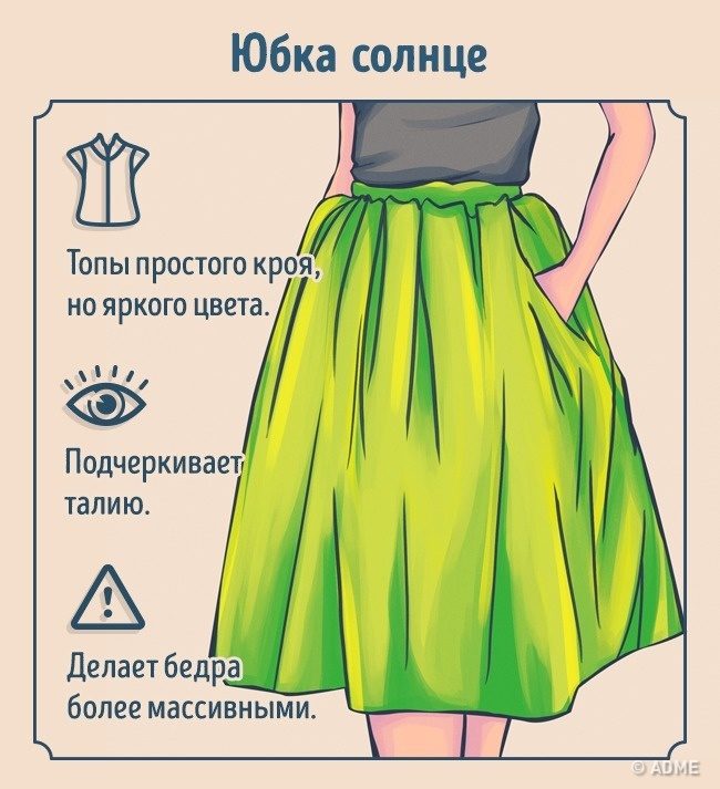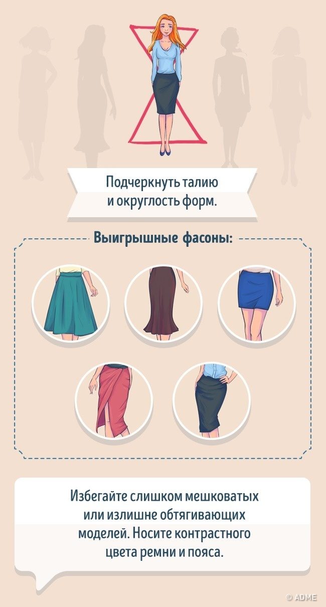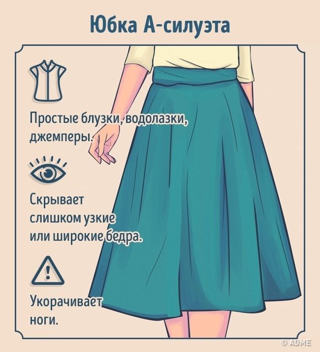 Мы подготовили простую шпаргалку, которая поможет разобраться во всех тонкостях и выбрать идеальную юбку по типу вашей фигуры.