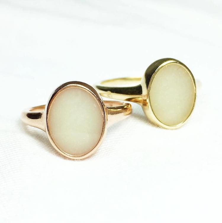Дизайнер компании Sacred Legacy Arts Келли Хоуланд, решила исправить это обстоятельство. Она нашла способ превращать жидкое грудное молоко в твёрдую, напоминающую драгоценный камень субстанцию, которую затем вставляет в кольца или ожерелья.