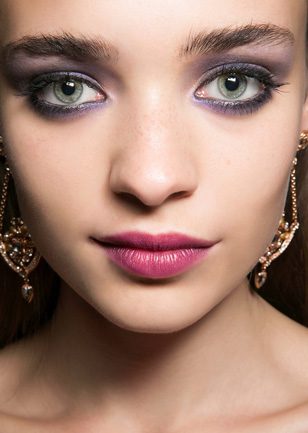 Сегодня актуальны ежевичные, сливовые и баклажанные оттенки. Можно попробовать добавить чувственности губам при помощи красной или алой губной помады.