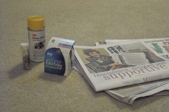 Застелите пол газетами и разместите на них колготки так, чтобы чулки не соприкасались.
