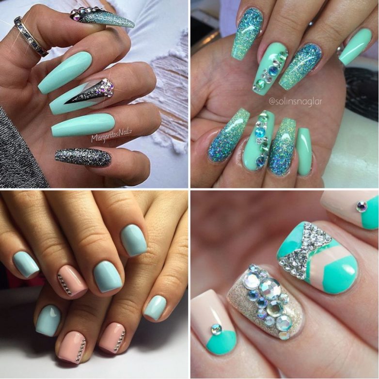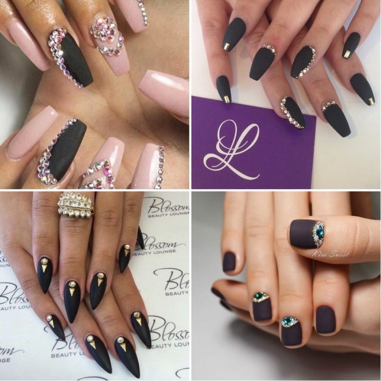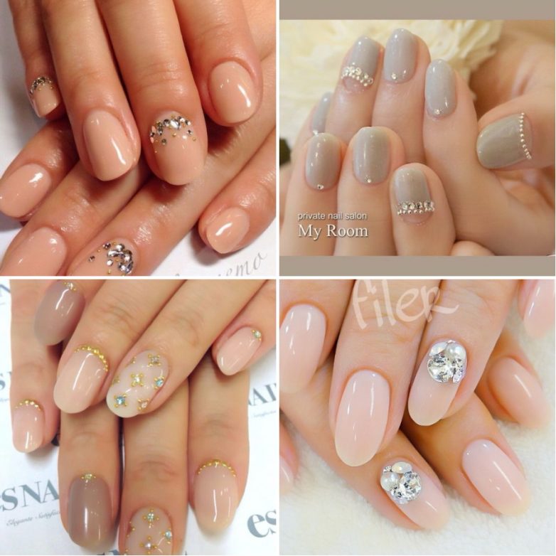 их цвет страз должен соответствовать одному из оттенков на ногтях;