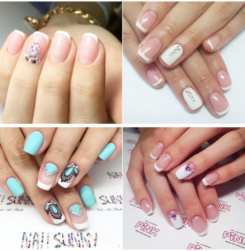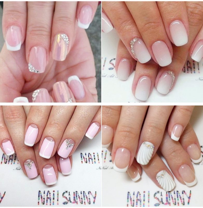 Сегодня понятие «френча» не ограничивается той самой первой вариацией. Хотя она также сохранилась по сей день и заслуженно возведена в ранг классики. Визажисты же готовы предложить следующие модные вариации френча со стразами:белый классический;