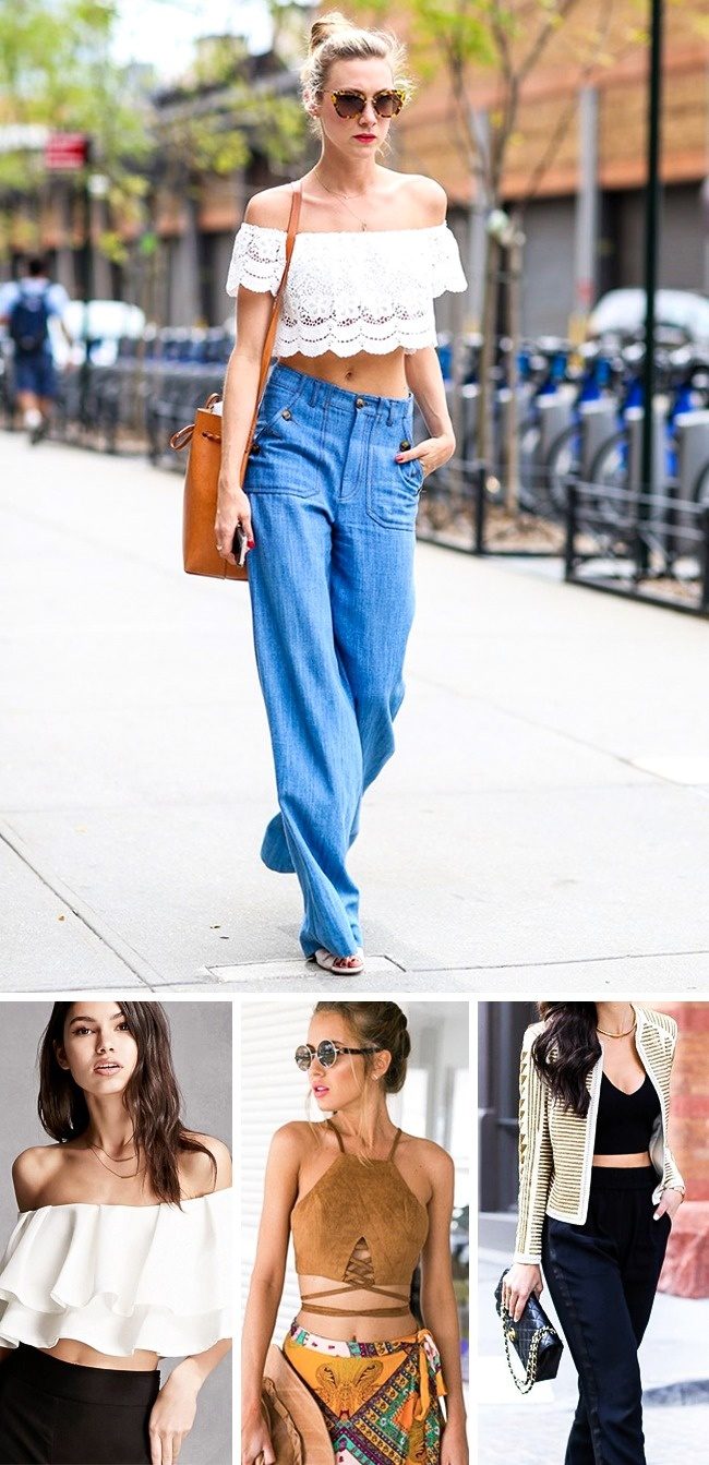 Похоже, можно смело заявлять, что мода начала 2000-х годов на короткие топы снова возвращается. Кроп-топы или бра-топы сегодня уместно комбинировать практически с любой деталью гардероба — брюками, юбками, шортами.