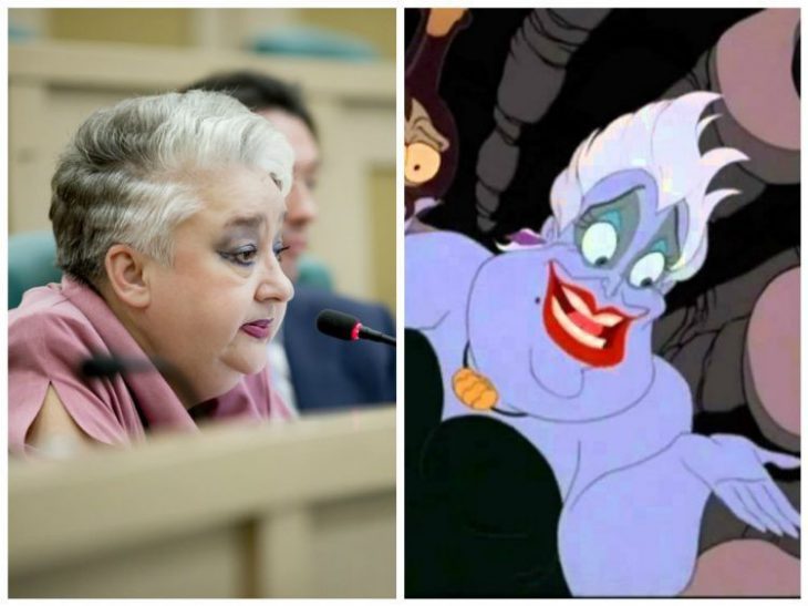 А глава комитета Липецкой области Ираида Тихонова явно черпает вдохновение для своего имиджа в Урсуле из «Русалочки»