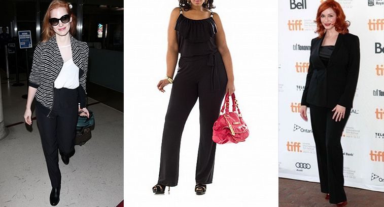 Подходят для любого места: офис, театр, прогулка по городу или по магазинам. Но нужно выбирать фасон, который бы идеально подходил вашей фигуре. Качественная плотная ткань будет правильно облегать бедра, а длина, прикрывающая каблук, зрительно удлинит ногу. Более подробно о видах черных брюк и с чем их носить написано здесь.