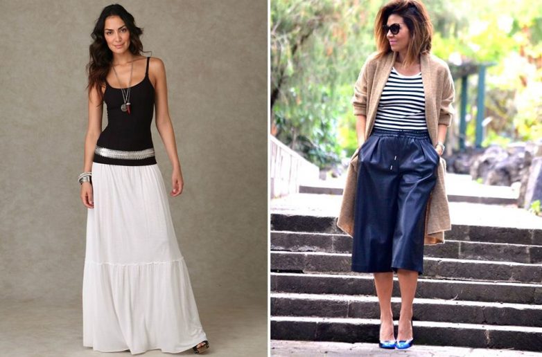 Чтобы одеваться по-разному для каждого случая, юбок может быть несколько: прямая, строгая и нарядная. Юбка-карандаш, заходящая за колено, это и классика и шик одновременно. Она делает фигуру более стройной, за счет чего образ становится одновременно деловым и женственным. Юбки важно правильно сочетать с верхом. Обычно женщины предпочитают блузки. Но это может быть и пуловер. Важно правильно подбирать фасон и цвета. Летом актуальной становится юбка в пол и сандалии на плоской подошве. Если одеться таким образом, женщина сразу станет легкой и загадочной.