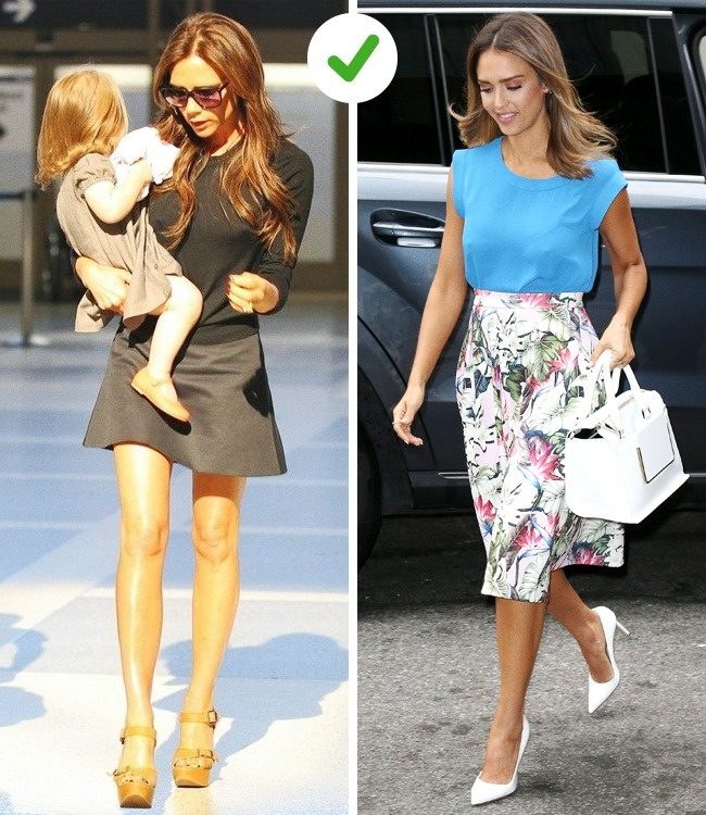 То же самое можно сказать о пышных юбочках со сборкой на талии. Они, несомненно, бесконечно милы, но подходят только подросткам. И, как видите, не идут даже Джессике Альбе. Их куда лучше заменить на короткие юбки А-силуэта, а если хочется пышности — на юбки в стиле нью-лук. И если у вас не телосложение модели, то лучше, чтобы верхняя часть юбки облегала бедра, иначе визуально прибавится пара лишних килограммов.