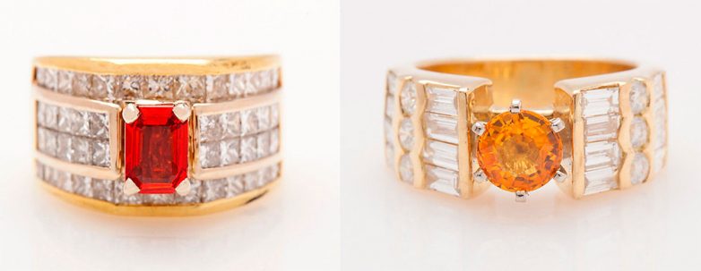 Настоящие и красивейшие падпараджи лучше всего искать в ювелирных коллекциях мировых брендов – Cartier, Chanel. Для падпараджей лучшей оправой могут быть благородные металлы: белое и розовое золото, платина. Кристаллы сочетают с бриллиантами и натуральным жемчугом.