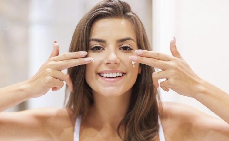 От середины лба к краям, от носа к вискам и от середины подбородка к скулам мелкими вращательными движениями. Так ты стимулируешь лимфодренаж и снижаешь риск отеков.