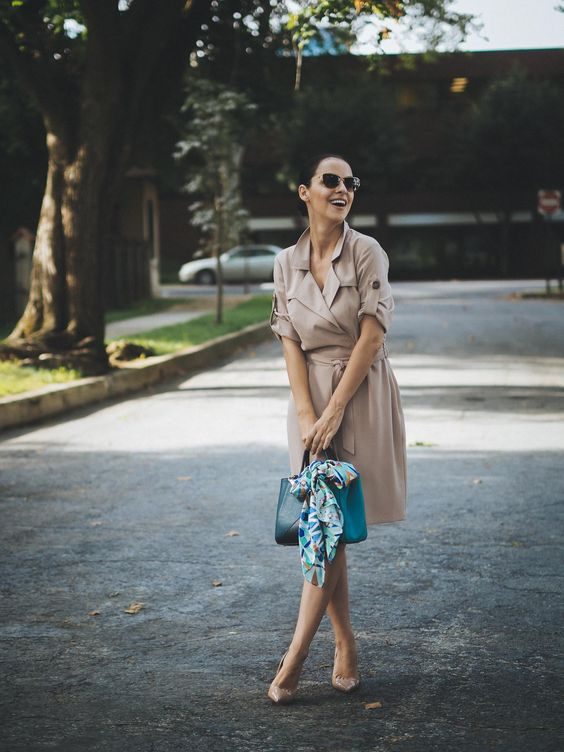 Для рабочих будней можно выбирать прямые и футлярные модели, платья-рубашки. Летом актуальны как нейтральные оттенки, так и более сочные. Но подбирайте строго однотонные варианты. Дополнять комплекты следует классическими аксессуарами: полуоткрытыми или закрытыми туфельками, жесткими сумками геометричной формы и небольших размеров или стеганой сумочкой а-ля Шанель.