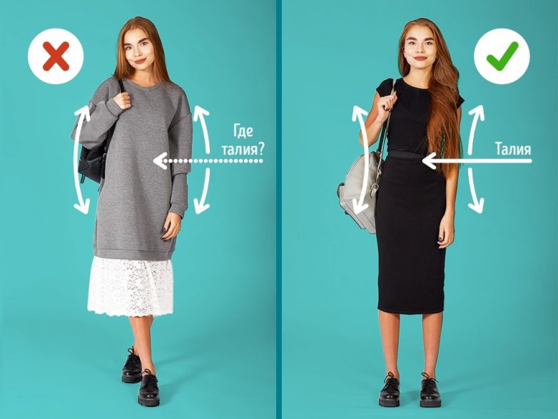 Но есть и минусы: нужно тщательно подбирать одежду, поскольку неудачные сочетания могут запросто укоротить фигуру и лишить ее изящества.