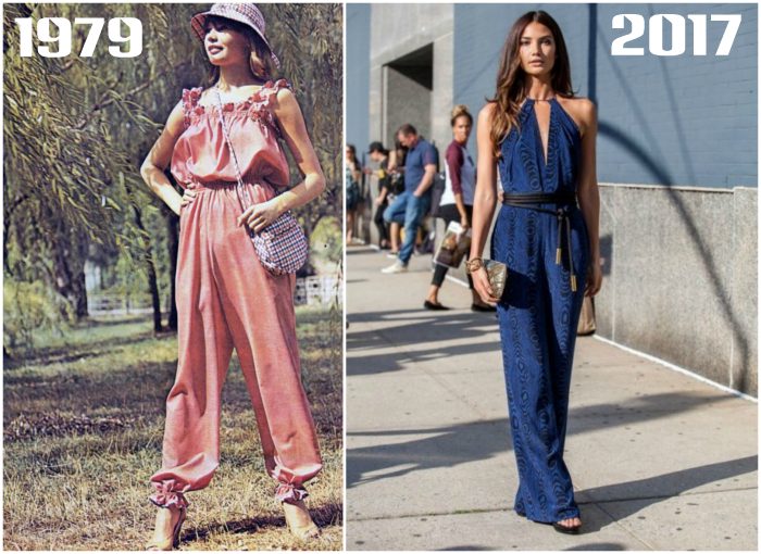 В далеком 1979 году в моду вошли, диковинные для советского человека, женские комбинезоны. Стоит отметить, что в тот период надеть такую вещь осмелилась бы далеко не каждая женщина, да и приобрести нечто подобное было весьма сложно. Сейчас, всевозможные комбинезоны вновь находятся на на вершине модного Олимпа, а огромное количество моделей позволяют выбрать фасон, соответствующую любому событию.