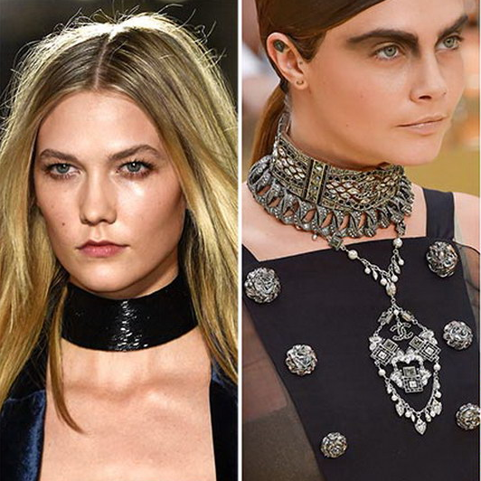 Что касается украшений для весны-лета 2017, то здесь действует главное правило — много, ярко и массивно. Чокеры упорно держат свои позиции. К ним добавляются кулоны и подвески больших размеров, а так же массивные ожерелья. Серьги 2017 — в моде большие и заметные, часто по типу люстра. Особым стильным решением, стал способ ношения одной серьги или разных вариантов.