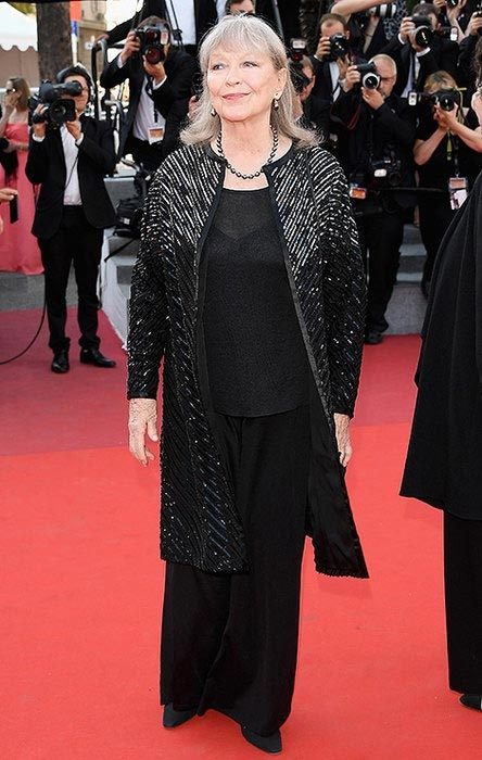Total black look предпочла и Марина Влади — на красной дорожке актриса появилась в комплекте из юбки и топа, дополненном легким пальто с серебристым декором.