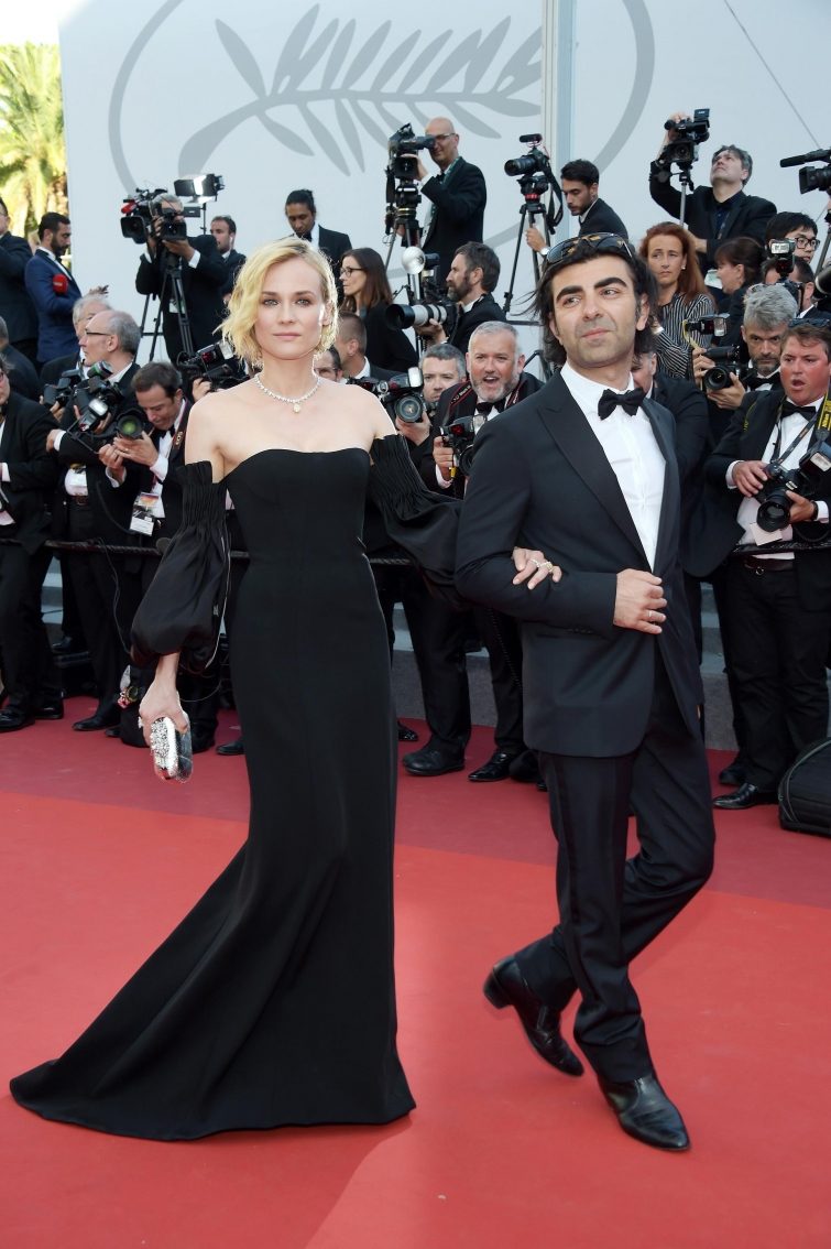 А вот Диана Крюгер решила сохранить верность любимому черному цвету —за заслуженной наградой звезда поднималась в эффектном платье с открытыми плечами, которое дополнила массивным колье.