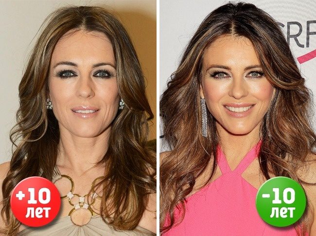 Прибавляет возраст: Прически без объема, тусклые волосы.Делает моложе: Создайте объем с помощью мусса или пенки, завершите укладку маслом для волос: нанесите небольшое количество средства на ладонь, проведите пальцами по волосам с середины длины, уделяя особое внимание кончикам. Оптимальная длина волос — не короче, чем до подбородка, и не ниже плеч.
