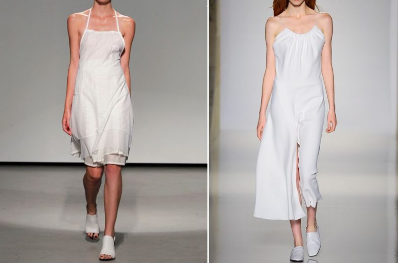 В этом году дизайнеры делают акцент на воздушности и женственности, предлагая легкие фасоны из струящихся тканей. Легкие материалы и простой крой позволяют носить модели в жаркую погоду в повседневной жизни. Более сложные и интересные модели с драпировкой, многослойностью и различными деталями предлагаются для особых случаев, вечеринок и торжеств.Высокая талия