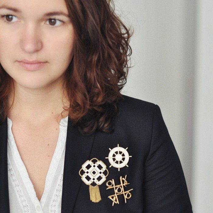 Броши были популярны в 70-80-хх годах прошлого века. Их чаще всего крепили на пальто и жакеты. Сегодня с таким аксессуаром следует обращаться очень аккуратно, ведь если неправильно подобрать брошь, она тут же откинет вас на несколько десятилетий назад. Молодой женщине следует выбирать аккуратную брошь, которая не привлечет слишком много внимания.