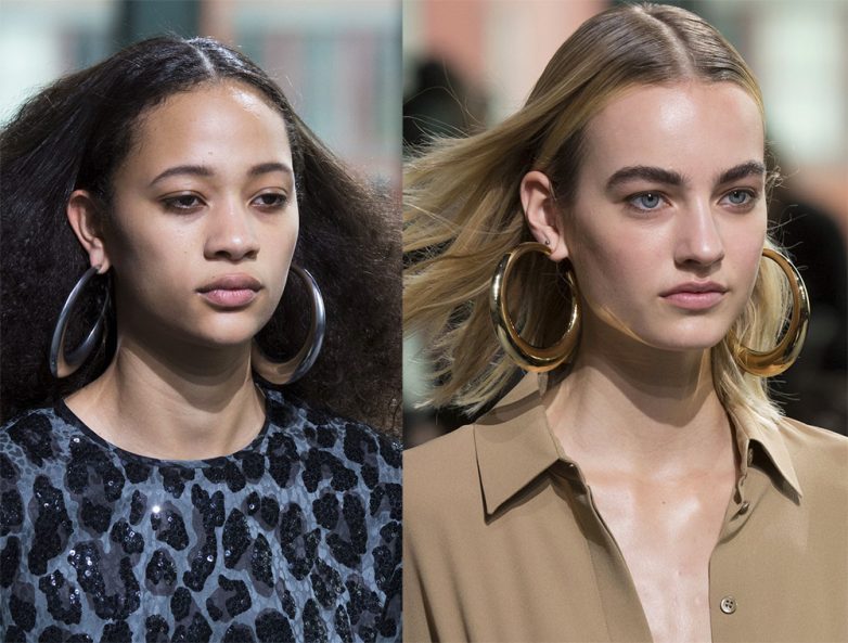Для более прохладного времени лучшим выбором будут серьги с меньшим диаметром кольца, чтобы они не цеплялись за шарф или шапку. Особенно эффектно смотрятся золотые серьги- кольца осенью, сочетаясь с золотым пожаром природы.