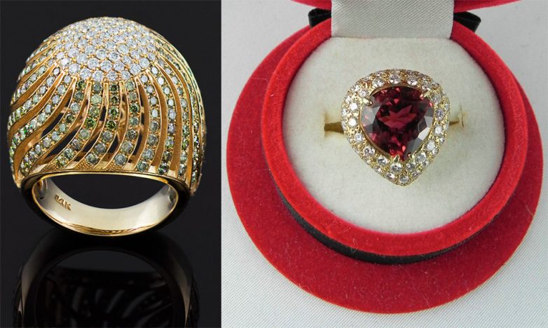 Коктейльное кольцо — массивное кольцо с драгоценным или полудрагоценным камнем весом не менее 3х карат. Возможны варианты колец с эмалями и множеством мелких камней. В последнее время популярны кольца размером в полпальца и даже больше. Не пугайтесь размеров украшения. Коктейльные кольца – этот случай, когда Вы можете позволить себе огромный камень или декоративный элемент, и он не будет выглядеть вульгарно.1. По правилам ювелирного этикета коктейльные кольца можно носить только на среднем или указательном пальцах правой руки.