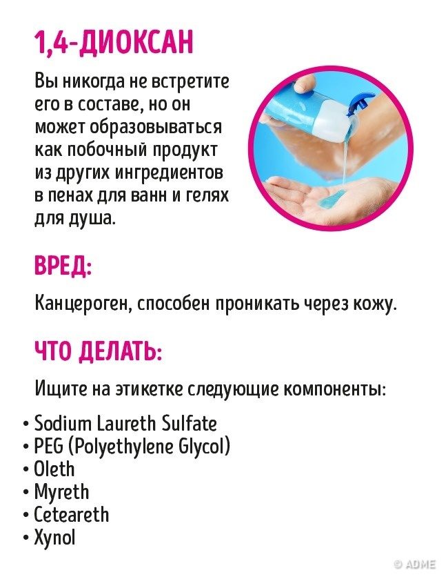 Сложно запомнить все вредные вещества, но в нашей компетенции как можно реже пользоваться косметикой, а мыло и гель «тестировать» на вредные вещества…