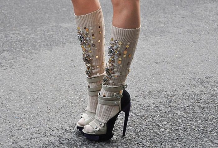«Именно поэтому во Франции не прижилась мода носить носки под туфли или босоножки. Да и в платье-ночной рубашке француженку на улицах города не встретить», а у нас в России, тоже не ходят в«ультромодных»нарядах…