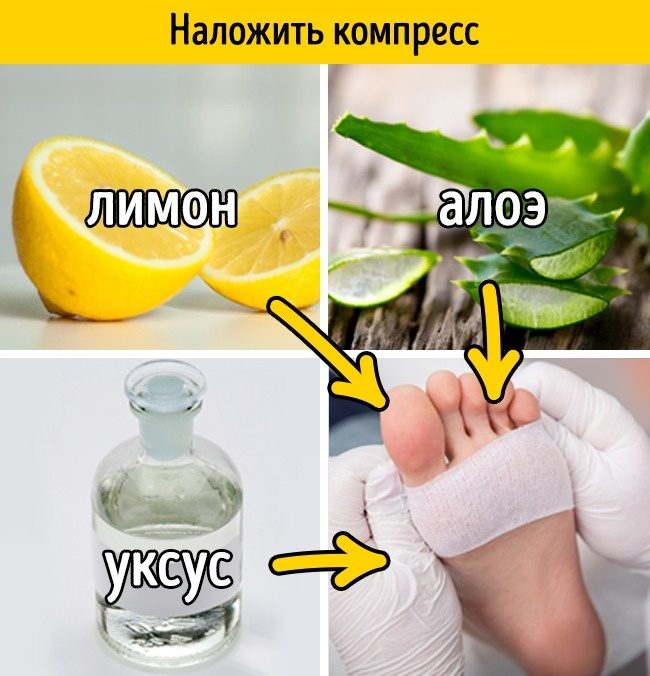 Лимон. Самый эффективный способ — приложить к распаренной коже лимонную корку с мякотью. Если делать это на ночь, через 3–4 дня достаточно еще раз распарить ноги в теплой воде с солью и удалить мозоль.