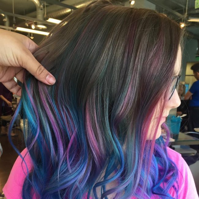 Техника окрашивания волос «скрытая радуга».