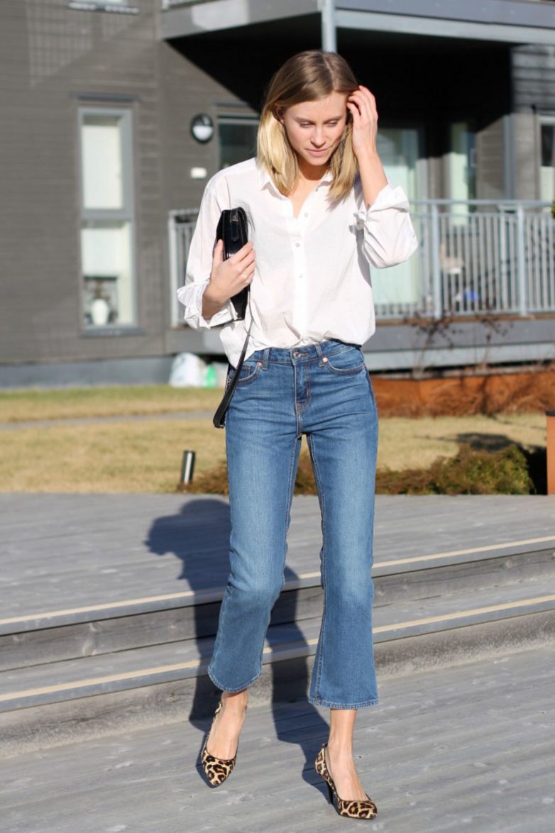 В моду возвращается легенда 70-х – джинсы-клеш. На пике популярности будут брюки клеш от бедра либо клеш от колена. Оба варианта позволяют корректировать некоторые недостатки женского тела. Чтобы выглядеть более стройной и иметь невероятно длинные ноги, которые сведут с ума кого угодно, достаточно носить обувь на высоких каблуках или модели на танкетке. При этом важно, чтобы каблук или танкетка были закрыты низом штанины.Нынче актуальна классика – в данной модели джинсов лучше отказать от разнообразных принтов, вызывающего декора, потертостей, рванины и т.д.