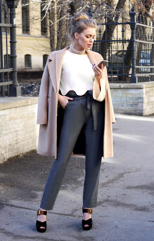 5. Брюки с завышенной талией, чтобы визуально удлинить ноги