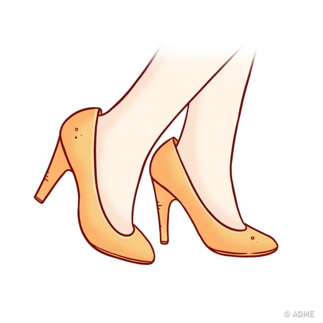 Если обувь слишком свободно сидит на ноге, она держится в основном на пальцах ног. Так мышцы ног перенапрягаются, и это может выработать некрасивую шаркающую походку. Кроме того, в результате могут деформироваться пальцы и суставы, образоваться костные мозоли, появиться боли в коленях и спине.5. Обувь больше нужного размера