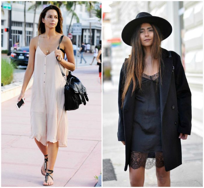 Бельевой стиль, буквально заполонил модные подиумы и стал настоящим хитом 2016-2017 года. Соблазнительные короткие платья комбинации из шелка и атласа, украшенные кружевом, вышли за пределы спальни и перешел в разряд коктейльных нарядов. Такие платья в зависимости от дизайна могут стать, как частью элегантного торжественного образа, так и атрибутом стиля кэжуал.
