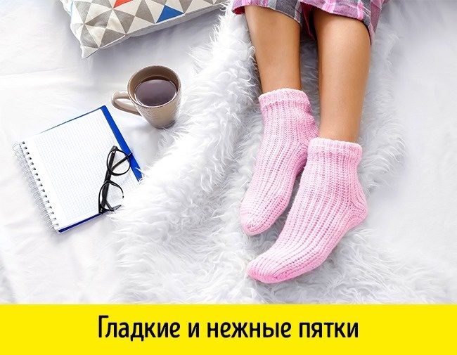 Летом они могут быть хлопчатобумажные, а зимой — шерстяные. Перед сном, после того как приняли душ, обильно смазывайте ноги кокосовым маслом с добавлением нескольких капель мятного. Помассируйте, дайте маслу немного впитаться, затем надевайте носочки и ложитесь спать. Эта процедура порадует вас сразу: уже утром ваши ножки станут мягкими и нежными, а через месяц вы и не вспомните о грубой коже на пятках.10. Читайте каждый день