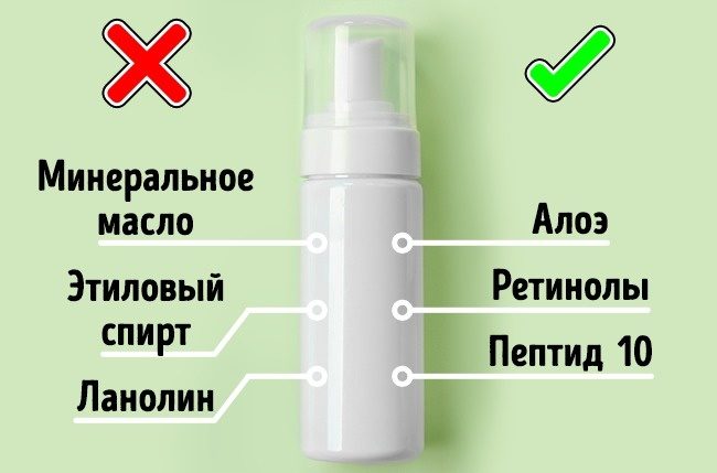 Избегайте косметических продуктов, которые содержат спирты и масла. Спирты высушивают кожу и вызывают раздражение, провоцируют появление прыщей. Масла делают кожу жирной и закупоривают поры.
