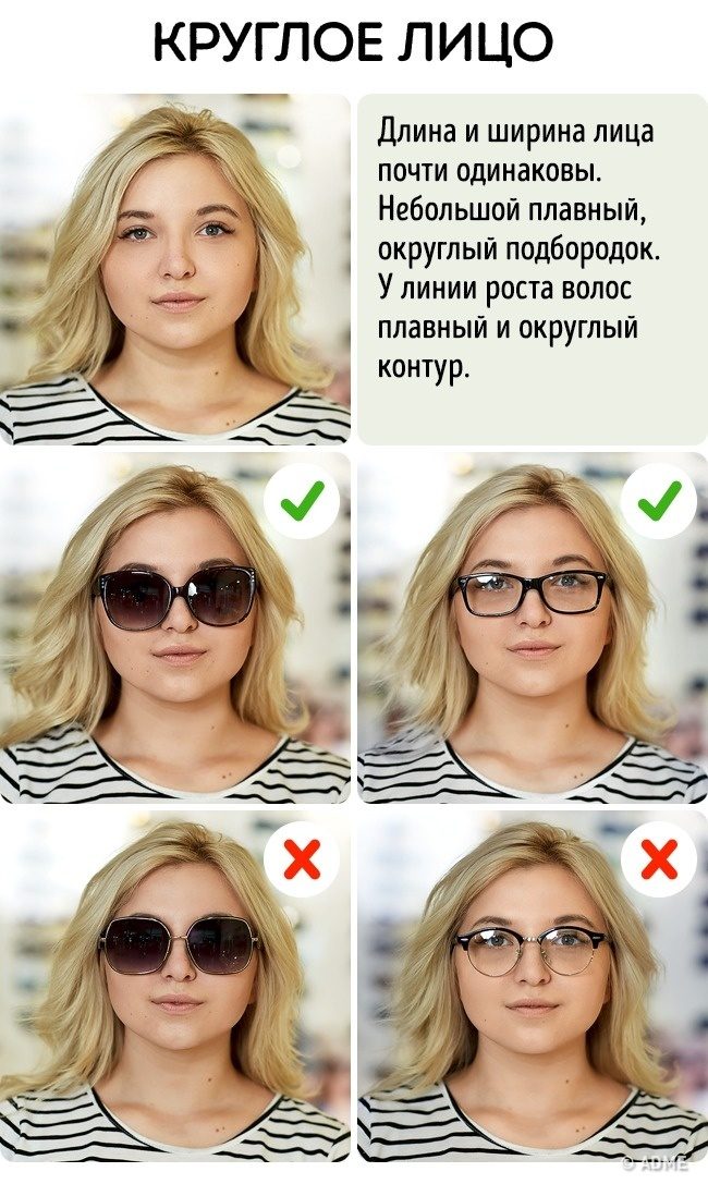 Прямоугольные или квадратные острые формы будут перегружать лицо. Визуально сбалансировать и смягчить пропорции лица помогут закругленные оправы.