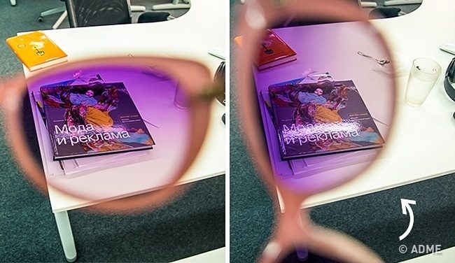 Поляризационные линзы отсеивают отраженный свет, убирают блики и снижают усталость глаз. Отличить очки с поляризационным фильтром очень просто. Посмотрите на поверхность с бликами. Если очки с фильтром, то блик исчезнет.