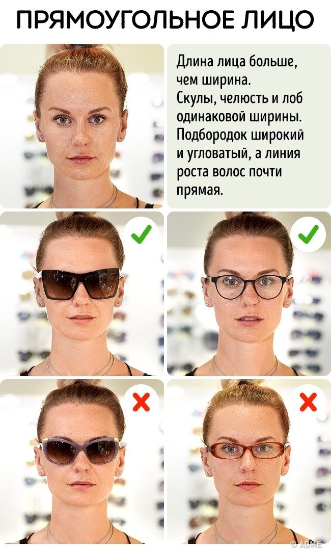 Задача — визуально удлинить лицо, поэтому выбирайте оправы темного цвета. Они сужают лицо и приближают его к овалу. Чтобы сбалансировать пропорции лица, выбирайте оправу, у которой ширина больше, чем высота.