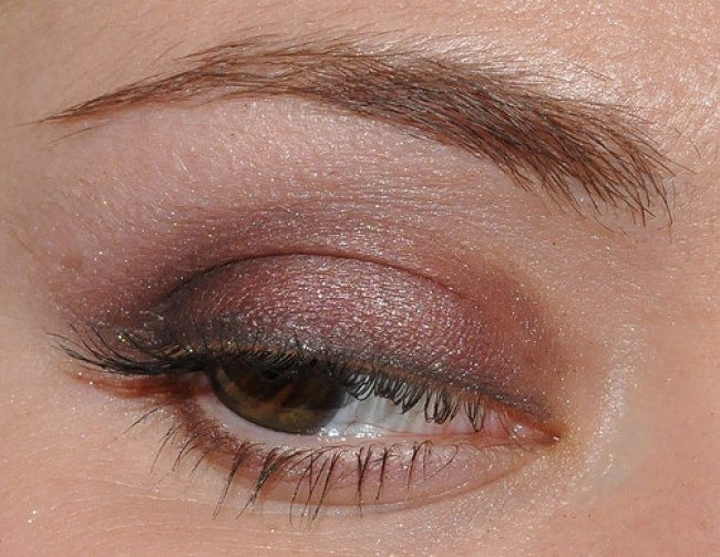 Яркие тени могут здорово смотреться на вечеринке, празднике или торжественном приеме. Но, для того чтобы не выглядеть вульгарно, решившись на яркие тени, весь остальной мейк нужно сделать приглушенным — как тут.